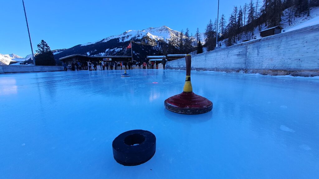Wir starten zur Stärkung auf unserer Terrasse mit einem feinen Raclette von der Molki Thusis danach geht es auf’s Eisfeld.